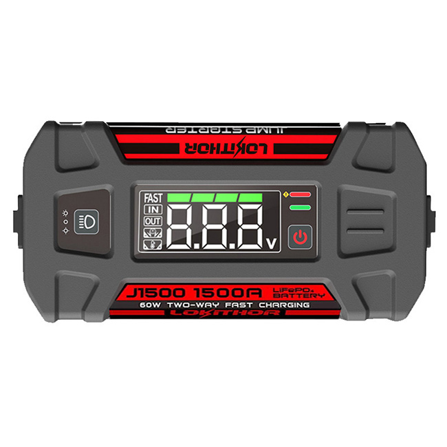 Ο εκκινητής αυτοκινήτου Lokithor J1500 παρέχει ρεύμα εκκίνησης 1500A και εκκινεί έως και 60 φορές μετά από μία πλήρη φόρτιση. Κατάλληλος για οχήματα με κινητήρες βενζίνης και πετρελαίου όπως αυτοκινήτα, μοτοσυκλέτες, σκάφη, RV, Vans, τρακτέρ κ.λπ. Η μπαταρία LiFePO4 είναι και η βασική εγγύηση ασφάλειας του J1500. Η διάρκεια ζωής είναι 50% μεγαλύτερη από τους παραδοσιακούς αναφλεκτήρες και ο αριθμός των χρήσεων είναι περισσότερες από 2000 φορές.- Το BMS της μπαταρίας αποτρέπει αποτελεσματικά από βραχυκυκλώματα, υπερένταση, αντίστροφη σύνδεση, υπερθέρμανση, χρονικό όριο, σπινθήρα και αποκοπή.