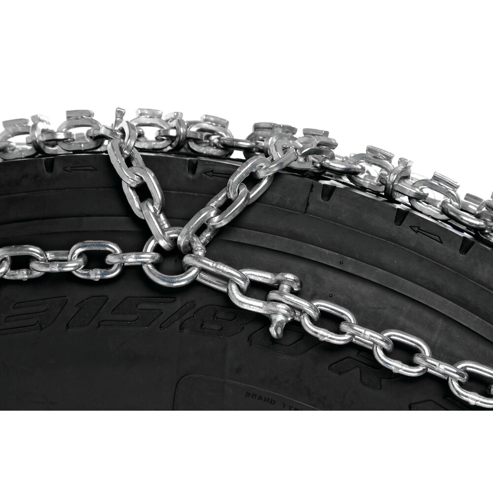 ΑΛΥΣΙΔΑ ΧΙΟΝΙΟΥ ΦΟΡΤΗΓΟΥ PRO TRACTION PLUS GR36 LAMPA - 2 ΤΕΜ. - Διπλή αλυσίδα με συμμετρικό μοτίβο με λαβή συνδέσμων σε σχήμα "διαμάντι" για απόλυτη πρόσφυση στον πάγο (diamond pattern). - Σχήμα "D" με διατομές 7, 8 και 10 mm. - Γαλβανισμένο ατσάλι με επιπλέον συνδέσμους και 1 cm πάχος χαλύβδινες ράβδους. - Με πλευρική αλυσίδα και μοχλό σύσφιξης. - Κατάλληλες για εκχιονιστικά, τρακτέρ και ειδικά οχήματα. - Αντιολισθητικές, ιδανικές για πλήρη προστασία κατά τη διάρκεια οδήγησης το χειμώνα. - Συσκευασμένα σε πλαστικό δοχείο με παλέτα. Συσκευασία 2 τεμαχίων. ΔΙΑΣΤΑΣΕΙΣ ΕΛΑΣΤΙΚΩΝ ΠΟΥ ΚΑΛΥΠΤΕΙ 12.5-18 12.5x80-18 335/80-18 340/80-18 365/70-18 320/70-20 38x14.00-20