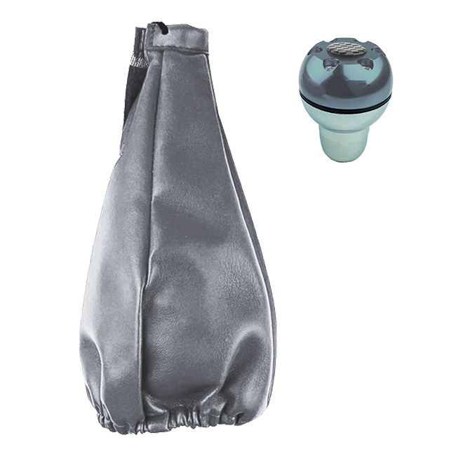 Πόμολο Και Φυσούνα Λεβιέ Ταχυτήτων Γκρι Δερματίνη