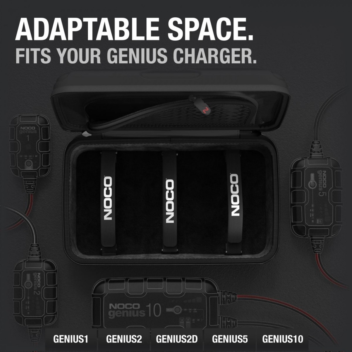 - Προσαρμοσμένη για να ταιριάζει στους φορτιστές GENIUS1, GENIUS2, GENIUS5 και GENIUS10, καθώς και τα παρεχόμενα αξεσουάρ.