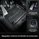 Το σετ Race Axion συνδυάζει την απόλυτη στεγανότητα με την εργονομική σχεδίαση για καθημερινή άνεση. Η ειδική κατασκευή ακολουθεί το σχήμα του δαπέδου για μέγιστη κάλυψη των επιφανειών. Επιπλέον, τα ενσωματωμένα κουμπώματα αποτρέπουν τη μετακίνηση του τάπητα κατά την οδήγηση.