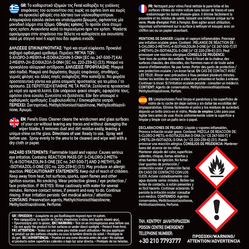 ✅ Χρησιμοποιήστε το με πανί μικροϊνών για τζάμια της Feral για τέλειο φινίρισμα.