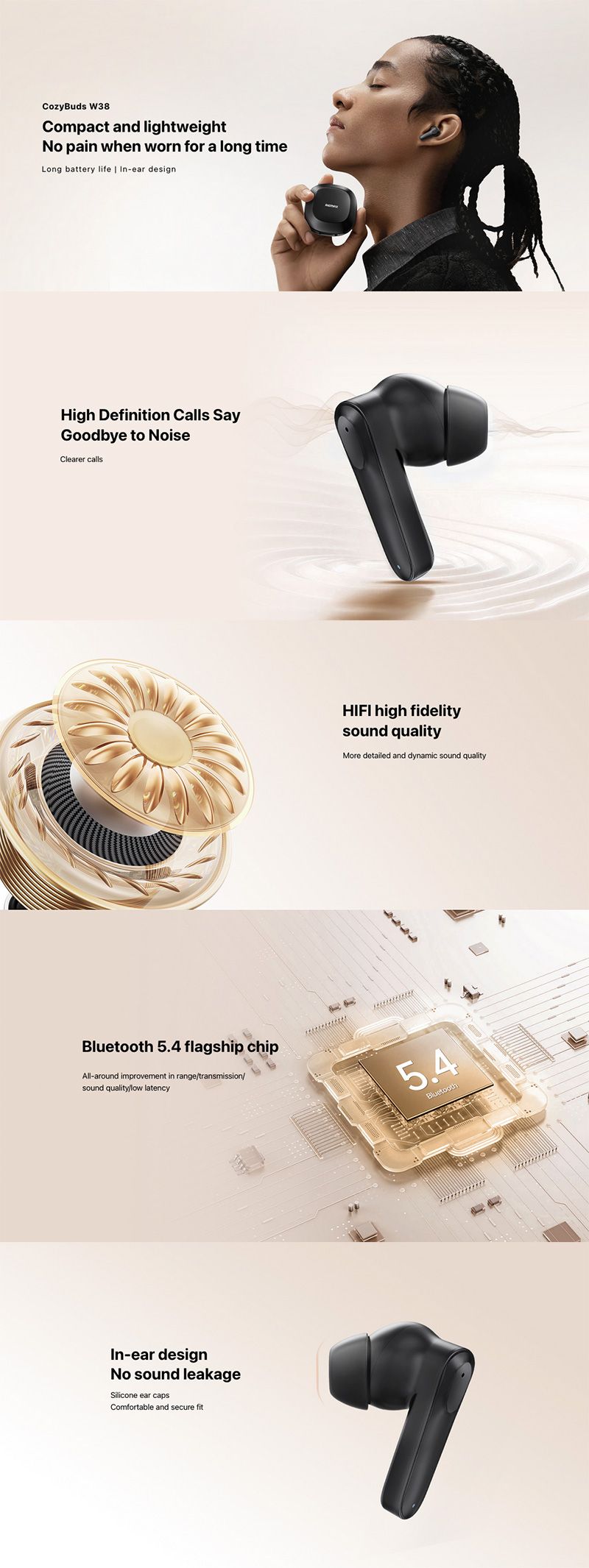 CozyBuds W38 True Wireless Stereo Music - Talking Earbuds
