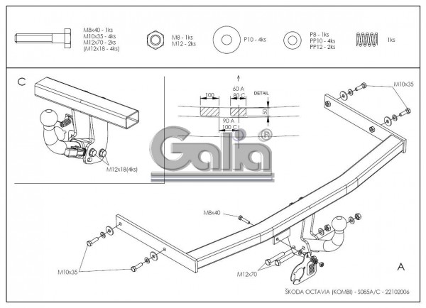 ŠKODA Octavia, Κοτσαδόρος, kombi, 1997-2010 1 generation (με βίδες) ×