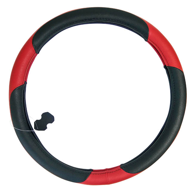 Κάλυμμα Τιμονιού Αυτοκινήτου Δερμάτινο Μαύρο-Κόκκινο Small 36cm 1 Τεμάχιο