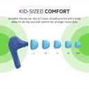 Αυτά τα ακουστικά προσφέρουν άνετη εφαρμογή, ειδικά για παιδιά από 7 ετών και άνω, χάρη στις 5 διαφορετικές επιλογές μεγέθους για τα άκρα σιλικόνης, συμπεριλαμβανομένου ενός εξαιρετικά μικρού μεγέθους.