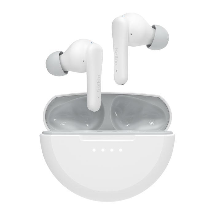 Περιοριστής έντασης Safe Sound στα 85dB Προστατεύει την ευαίσθητη παιδική ακοή από τους δυνατούς ήχους. Χειριστήρια αφής φιλικά προς τα παιδιά. Ήχος χωρίς καλώδια και κουμπιά με χειριστήρια αφής σε κάθε ακουστικό για έλεγχο της έντασης, έναρξη και τερματισμό κλήσεων και παράλειψη ή παύση τραγουδιών. Belkin Signature Sound. Τα ακουστικά SoundForm Nano 2 είναι σχεδιασμένα για να προσφέρουν γεμάτο, ισορροπημένο ήχο υψηλής πιστότητας. Γρήγορη και εύκολη ζεύξη με Bluetooth 5.3. Συνδεθείτε ασύρματα, χωρίς εμπόδια, με τις συμβατές συσκευές. Με μια ματιά: Τουλάχιστον 8 ώρες αδιάκοπης αναπαραγωγής, συν 20 ώρες αυτονομία μπαταρίας με τη θήκη φόρτισης. Ο περιοριστής έντασης Safe Sound στα 85dB προστατεύει την ευαίσθητη ακοή των μικρών παιδιών από τους δυνατούς ήχους. Τα αντιμικροβιακά καλύμματα διατίθενται σε πέντε διαφορετικά μεγέθη που προσφέρουν ασφαλή εφαρμογή και κορυφαία εμπειρία ακρόασης στα ευαίσθητα παιδικά αυτάκια. Η τεχνολογία κρυστάλλινης ποιότητας κλήσης μειώνει τους θορύβους του περιβάλλοντος ώστε η φωνή σας να ακούγεται καθαρά σε κάθε σας κλήση. Χάρη στην κλάση προστασίας IPX5 για αντοχή στον ιδρώτα και το νερό†, τα ακουστικά παραμένουν ασφαλή καθώς τα παιδιά πατούν σε λακκούβες με νερό, τρέχουν μέσα στο ψιλόβροχο ή παίζουν ξέγνοιαστα. Γεμάτος, ισορροπημένος ήχο υψηλής πιστότητας με την υπογραφή της Belkin. Τρία χαρούμενα χρώματα σχεδιασμένα ειδικά για παιδιά, που συνδυάζονται με τις συσκευές τους, τα ρούχα τους και τη διάθεσή τους ή με τα ακουστικά των φίλων τους. Χάρη στον μοναδικό της σχεδιασμό, η θήκη χωράει σε τσέπες και σακίδια για να μεταφέρεται εύκολα. Η τεχνολογία Bluetooth 5.3 επιτρέπει την ομαλή σύνδεση με συσκευές σε απόσταση έως 30 ft./10m. Η ταχεία φόρτιση μέσω USB-C προσφέρει 90 λεπτά αναπαραγωγής με φόρτιση 10 λεπτών. Με τα χειριστήρια αφής τα παιδιά μπορούν να ελέγχουν τις επιλογές ήχου, να αλλάζουν την ένταση, να παραλείπουν κομμάτια ή να κάνουν παύση όσο ακούν μουσική, ή να απαντούν και να ολοκληρώνουν κλήσεις χωρίς καλώδια και κουμπιά. Το προϊόν είναι κατασκευασμένο από ανακυκλωμένο πλαστικό** και η συσκευασία του είναι μηδενικής περιεκτικότητας σε πλαστικό υλικό. Η Συσκευασία Περιλαμβάνει: Ασύρματα ακουστικά SoundForm Nano 2 Wireless Earbuds για παιδιά Θήκη φόρτισης Καλώδιο φόρτισης USB-C 5 ζευγάρια αντιμικροβιακών καλυμμάτων σιλικόνης Οδηγός γρήγορης εκκίνησης Τεχνικές Προδιαγραφές Συμβατότητα † Δοκιμή της λειτουργίας μετά από διαβροχή του προϊόντος με περίπου 120 ml νερό και στέγνωμα. Δοκιμή της λειτουργίας μετά από πτώση σε σκληρή επιφάνεια από ύψος 2 μέτρων. **Το πραγματικό ποσοστό ανακυκλωμένου πλαστικού που περιέχεται σε κάθε εξάρτημα ποικίλει. Η συνολική περιεκτικότητα σε ανακυκλωμένο πλαστικό ανέρχεται σε ποσοστό 75% (εκτός των καλωδίων).