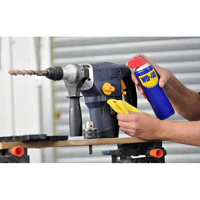 Το Αντισκωριακό WD – 40 έχει σχεδιαστεί στα εργαστήρια της NASA από έναν ιδανικό συνδυασμό συστατικών υψηλής ποιότητας και είναι κατάλληλο για περισσότερο από 2.000 χρήσεις στο σπίτι ή στην εργασία σας. Χάρη στην ειδική του σύνθεση διεισδύει σε βάθος και λιπαίνει οποιοδήποτε μηχανισμό που έχει μπλοκάρει, όπως ελατήρια, μεντεσέδες, πόμολα, παράθυρα, πεντάλ, βρύσες και καρούλια και δημιουργεί μία προστατευτική μεμβράνη η οποία εμποδίζει το σχηματισμό σκουριάς και τη διάβρωση. Επίσης, καθαρίζει, προστατεύει, σταματάει τα τριξίματα, απομακρύνει την υγρασία και χαλαρώνει τα σκουριασμένα μέρη. Απομακρύνει το νερό από τις μεταλλικές επιφάνειες και αφαιρεί τα ίχνη από πίσσα, λιπαρές ουσίες, κόλλα, μαρκαδόρους κ.α. Ξεμπλοκάρει και λιπαίνει κλειδαριές θυρών, φερμουάρ, ραπτομηχανές, μηχανισμούς συνδέσμους και συρματόσχοινα. Χρησιμοποιείται με απόλυτη ασφάλεια σε όλα τα μεταλλικά και πλαστικά υλικά χωρίς να δημιουργήσει πρόβλημα ασυμβατότητας. Παράλληλα είναι είναι κακός αγωγός του ηλεκτρισμού, ενώ το προωθητικό αέριο που περιέχει δεν είναι εύφλεκτο.