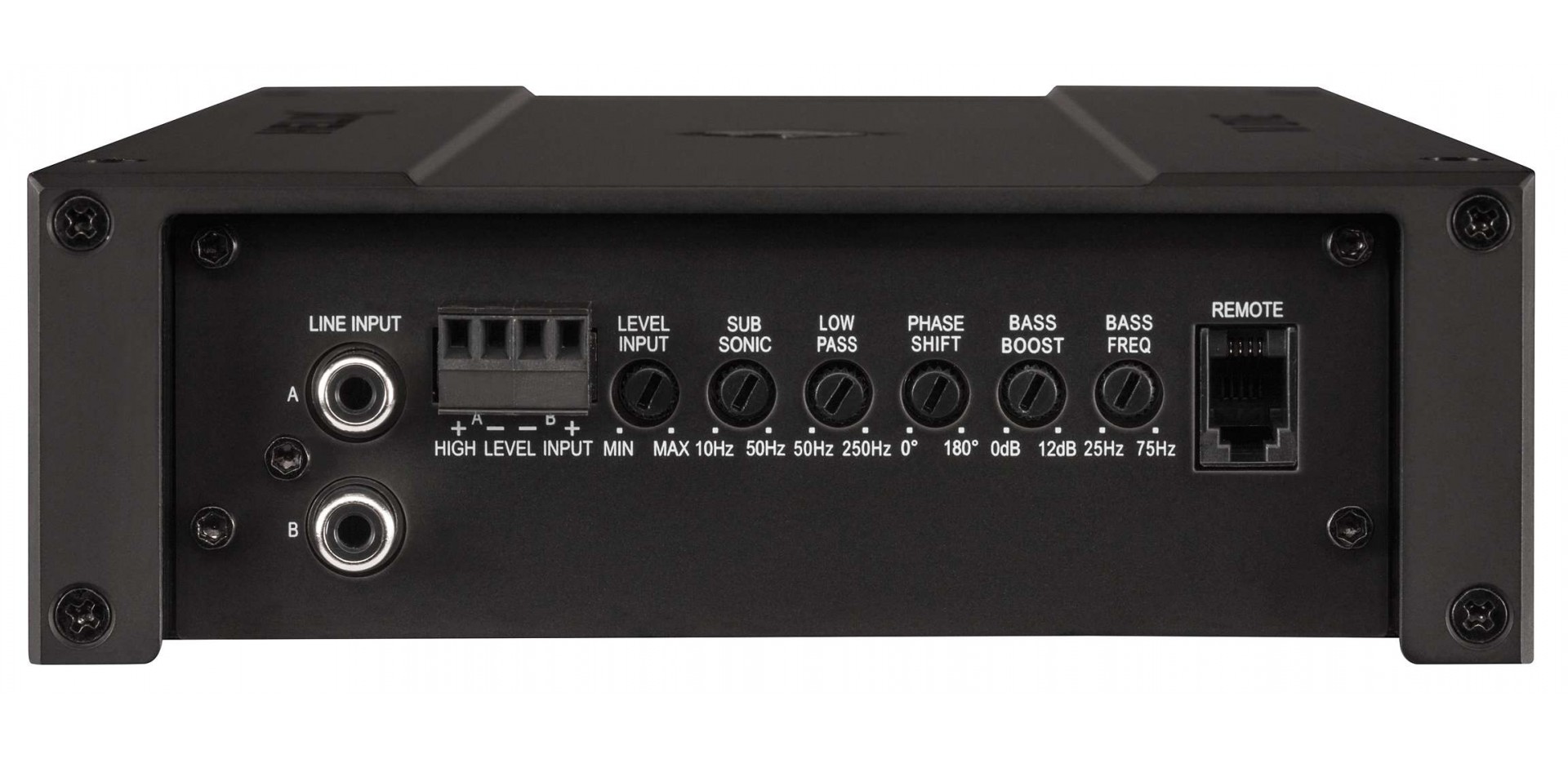 | Additional features | Active, adjustable crossover, bass boost, phase shift, Start-Stop capability, highlevel input with automatic turn on function and Advanced Diagnostics Error Protection (ADEP), bass volume cable remote control |