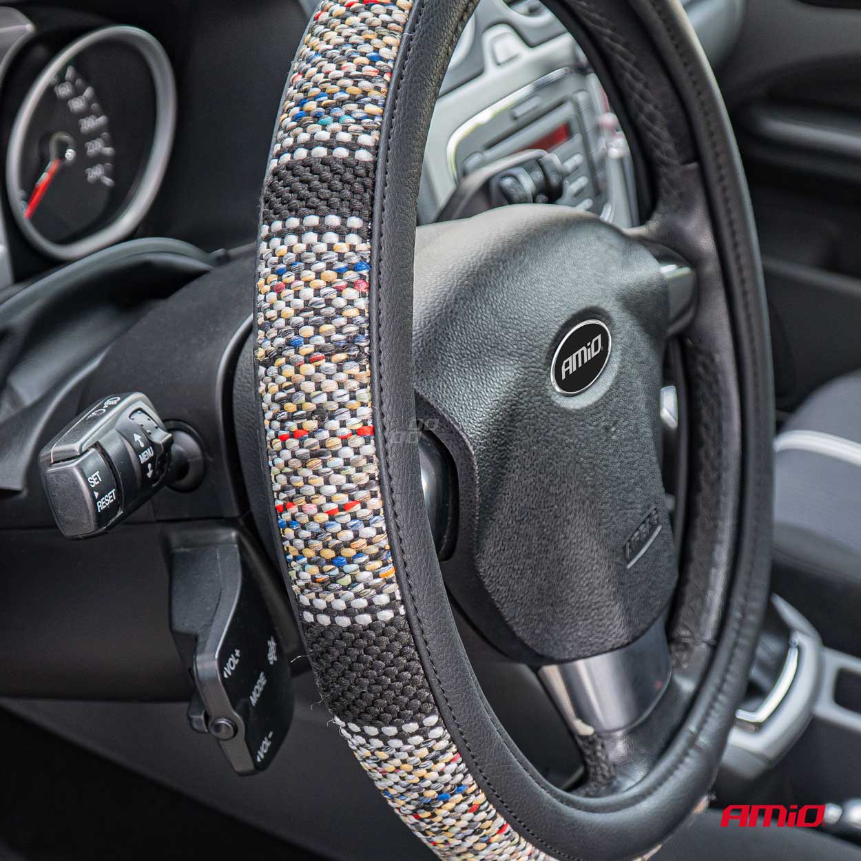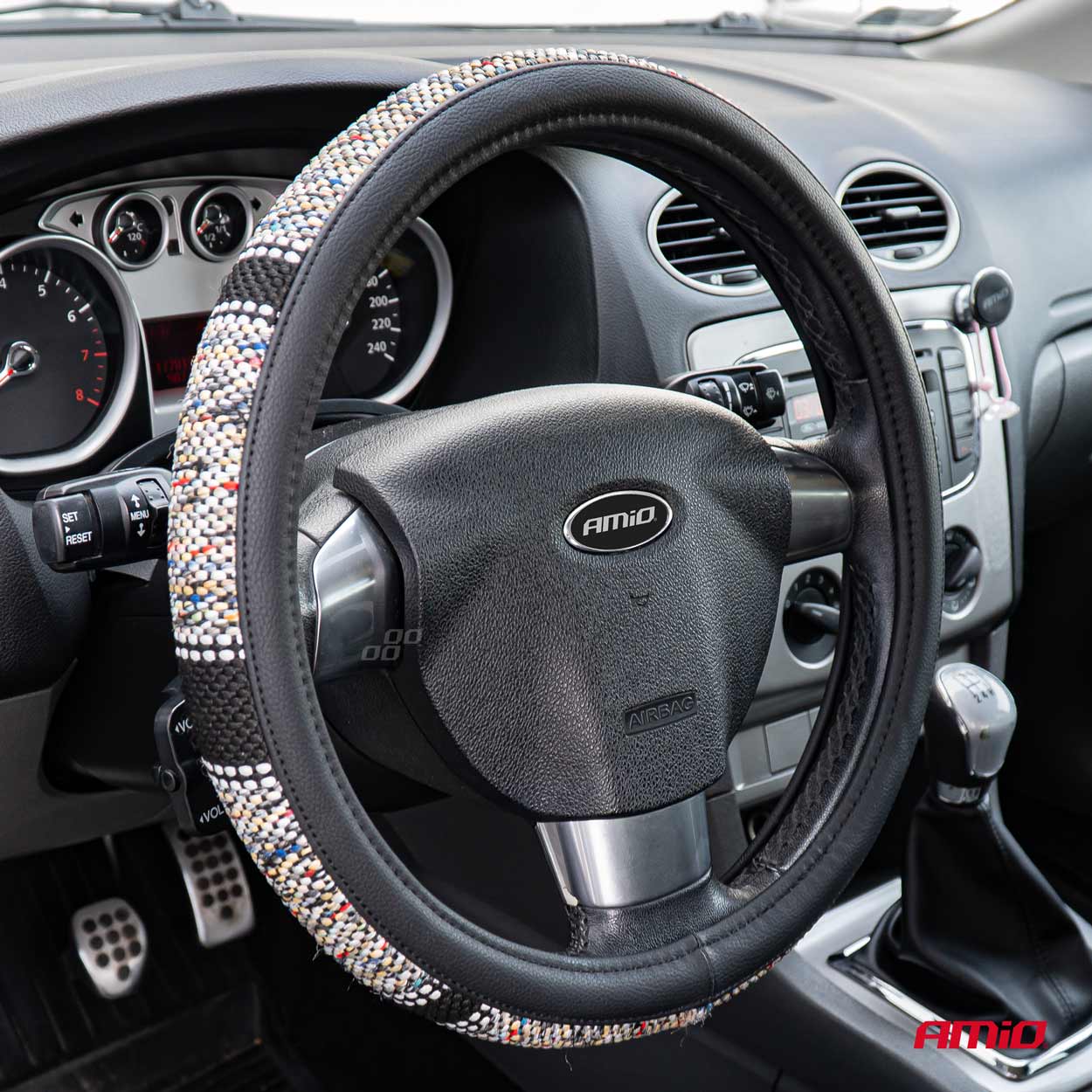 ΚΑΛΥΜΜΑ ΤΙΜΟΝΙΟΥ SWC-59 (M) 37>39cm ΜΑΥΡΟ ΜΕ ΣΧΕΔΙΟ ΠΟΛΥΧΡΩΜΗ ΨΑΘΑ AMIO - 1 ΤΕΜ. • Κατασκευασμένο από υλικά υψηλής ποιότητας που δεν εκπέμπουν οσμές. • Προστατεύει τέλεια το τιμόνι από την τριβή ή καλύπτει προηγούμενες ζημιές. • Η εσωτερική πλευρά του καλύμματος είναι αντιολισθητική και εμποδίζει την ολίσθηση του καλύμματος. Μέγεθος: 37-39 cm. Συσκευασία 1 τεμαχίου