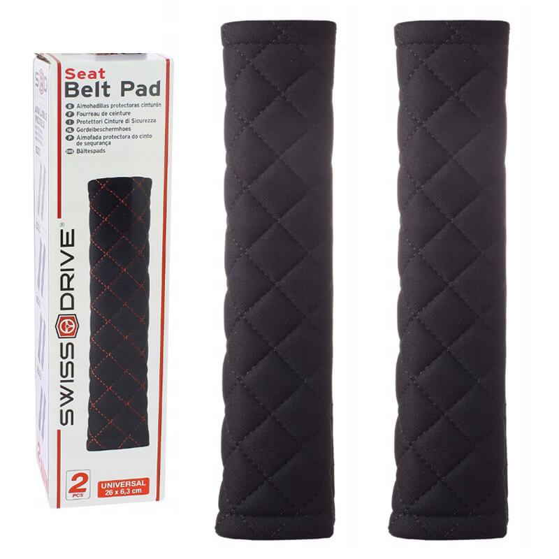 Μαξιλαράκια Ζώνης Ασφαλείας Swiss 26x6.3cm Μαύρα Με Μαύρη Ραφή Ζευγάρι 2 Τεμάχια ×