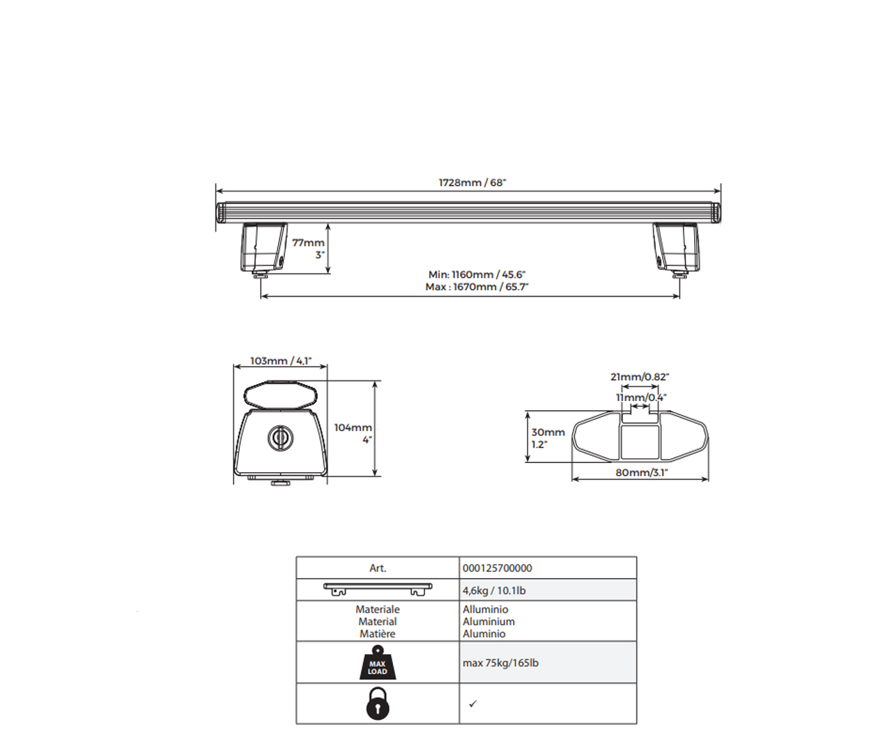 - Περιλαμβάνει: Μπάρες καρότσας, ενσωματωμένα άκρα, κλειδαριές, εργαλείο συναρμολόγησης και οδηγίες χρήσης.