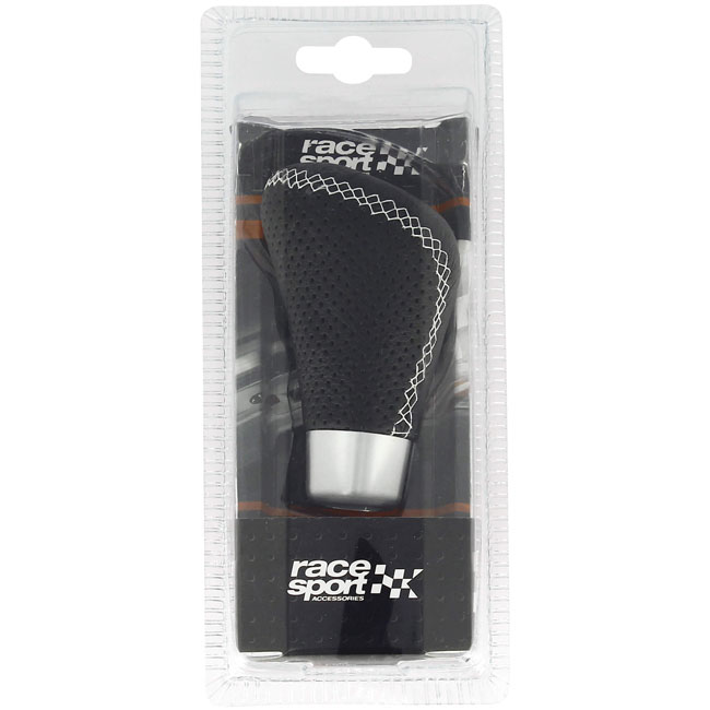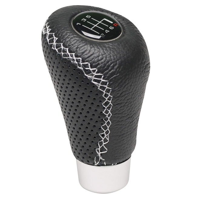 Πόμολο Λεβιέ Ταχυτήτων Universal Δερματίνη Μαύρο Με Άσπρη Ραφή Για Κανονική Όπισθεν 2505GRW