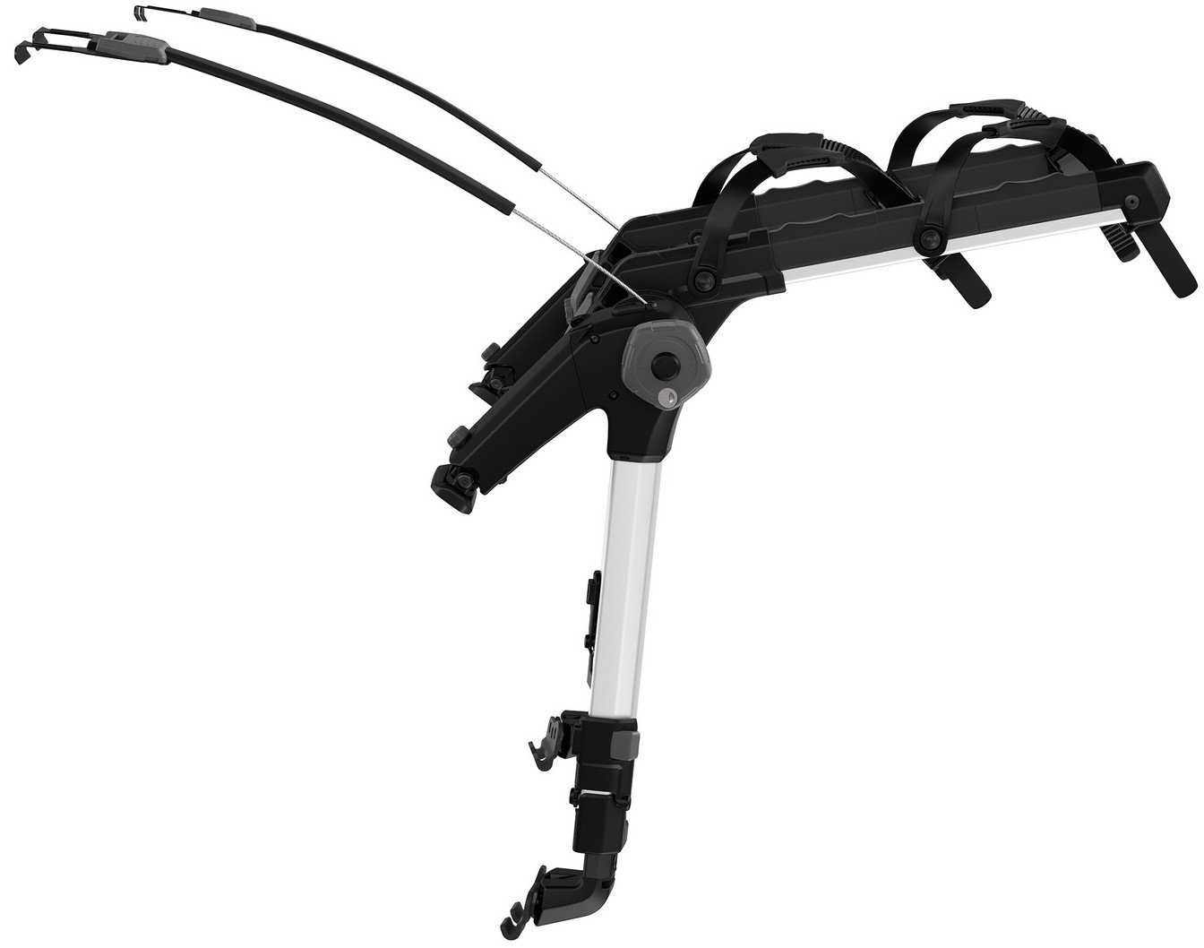- Bike arms fold down when not in use, and rack folds flat for easy transport and convenient storage