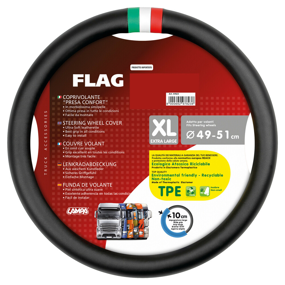 ΚΑΛΥΜΜΑ ΤΙΜΟΝΙΟΥ ΦΟΡΤΗΓΟΥ ΣΗΜΑΙΑ ΙΤΑΛΙΑΣ ΔΕΡΜΑΤΙΝΗ ΜΑΥΡΟ (XL) 49-51 cm ΟΙΚΟΛΟΓΙΚΟ & ΑΟΣΜΟ LAMPA - 1 TEM. ×